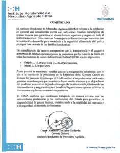 El gerente general del Instituto Hondureño de Mercadeo Agrícola (IHMA), Omar Gonzales junto al equipo técnico, realizó una visita al departamento de Olancho con el objetivo de firmar promesas de compra con pequeños productores, acción que busca garantizar precios justos y eliminar la figura del intermediario.